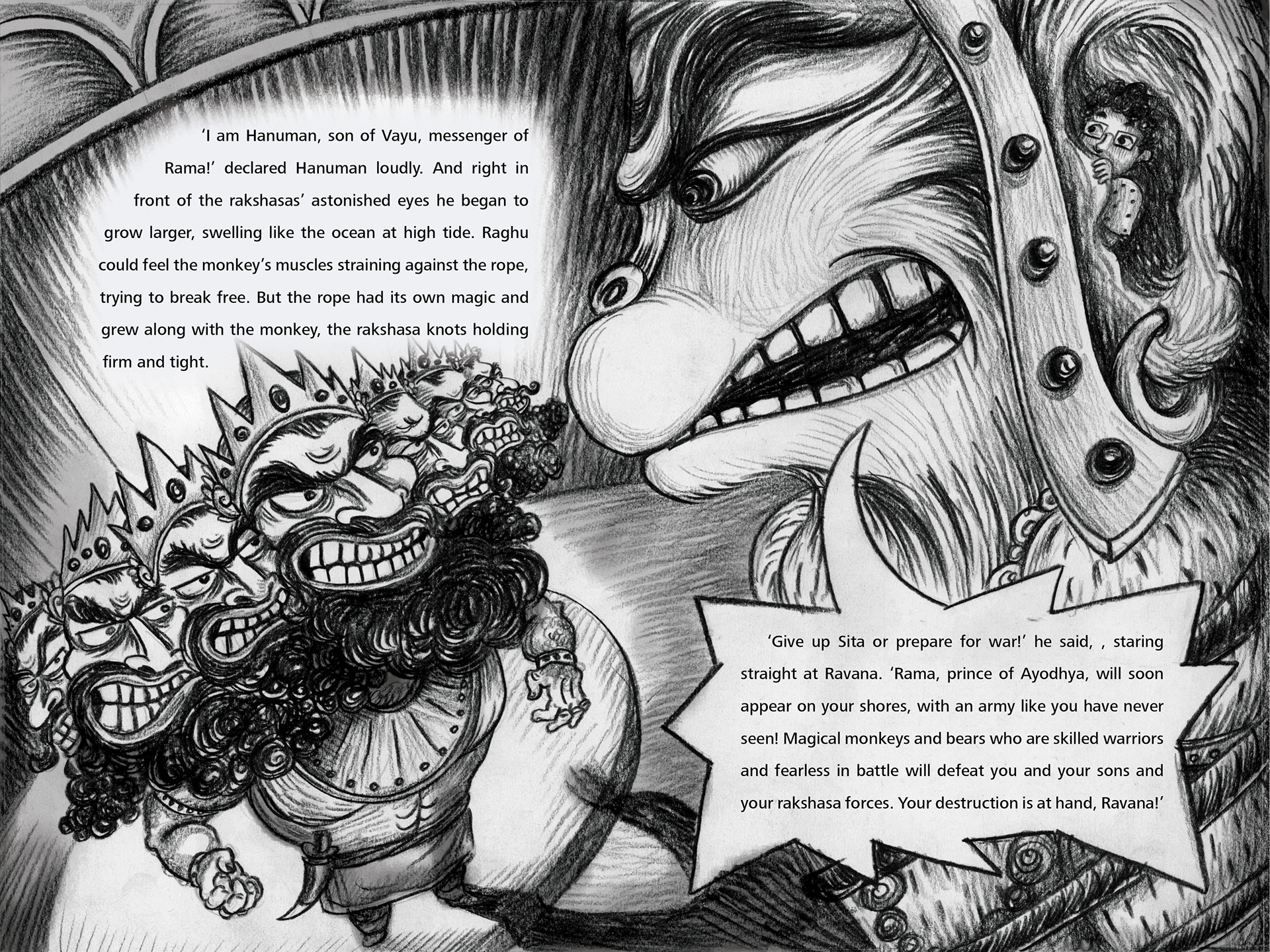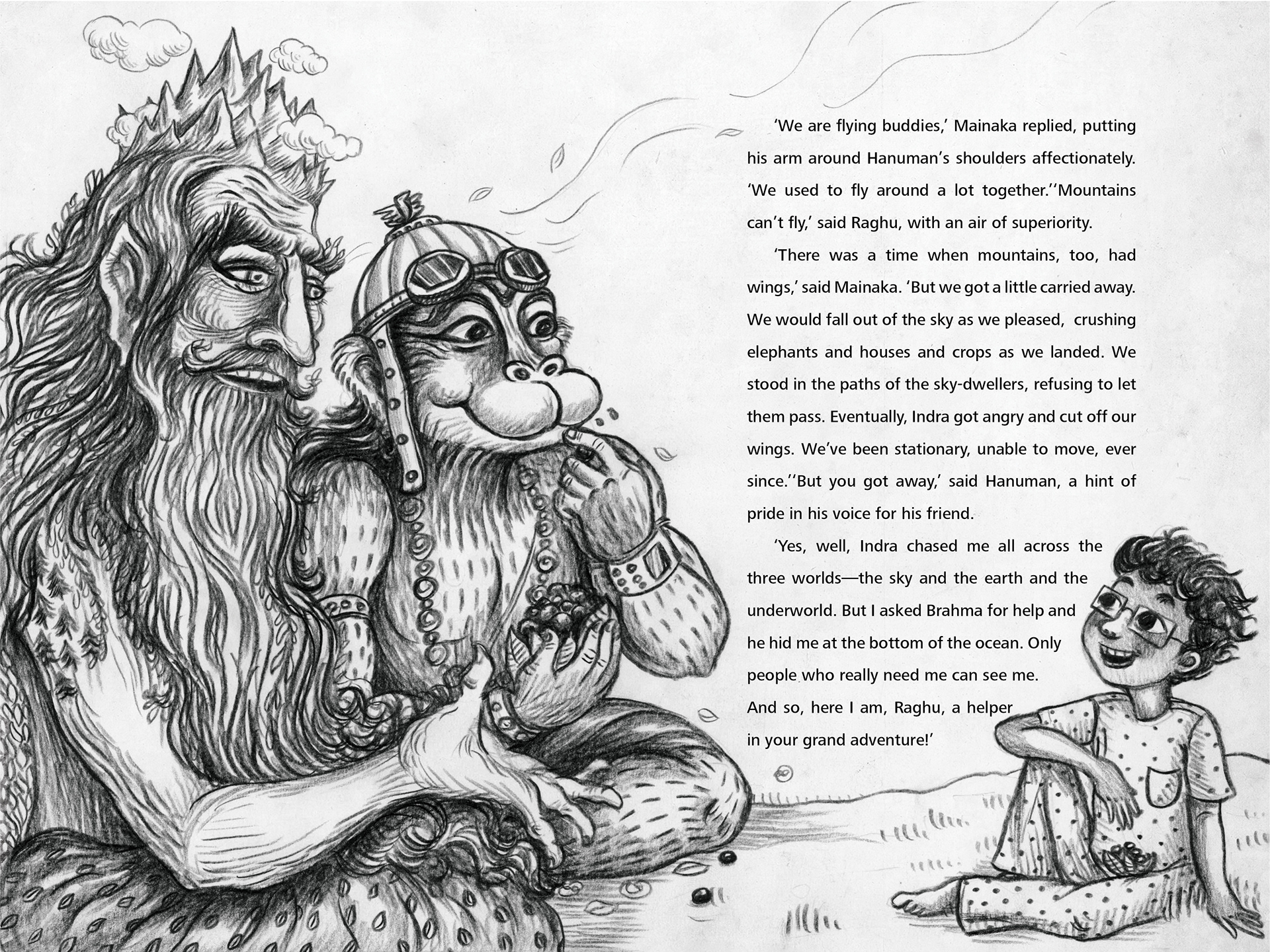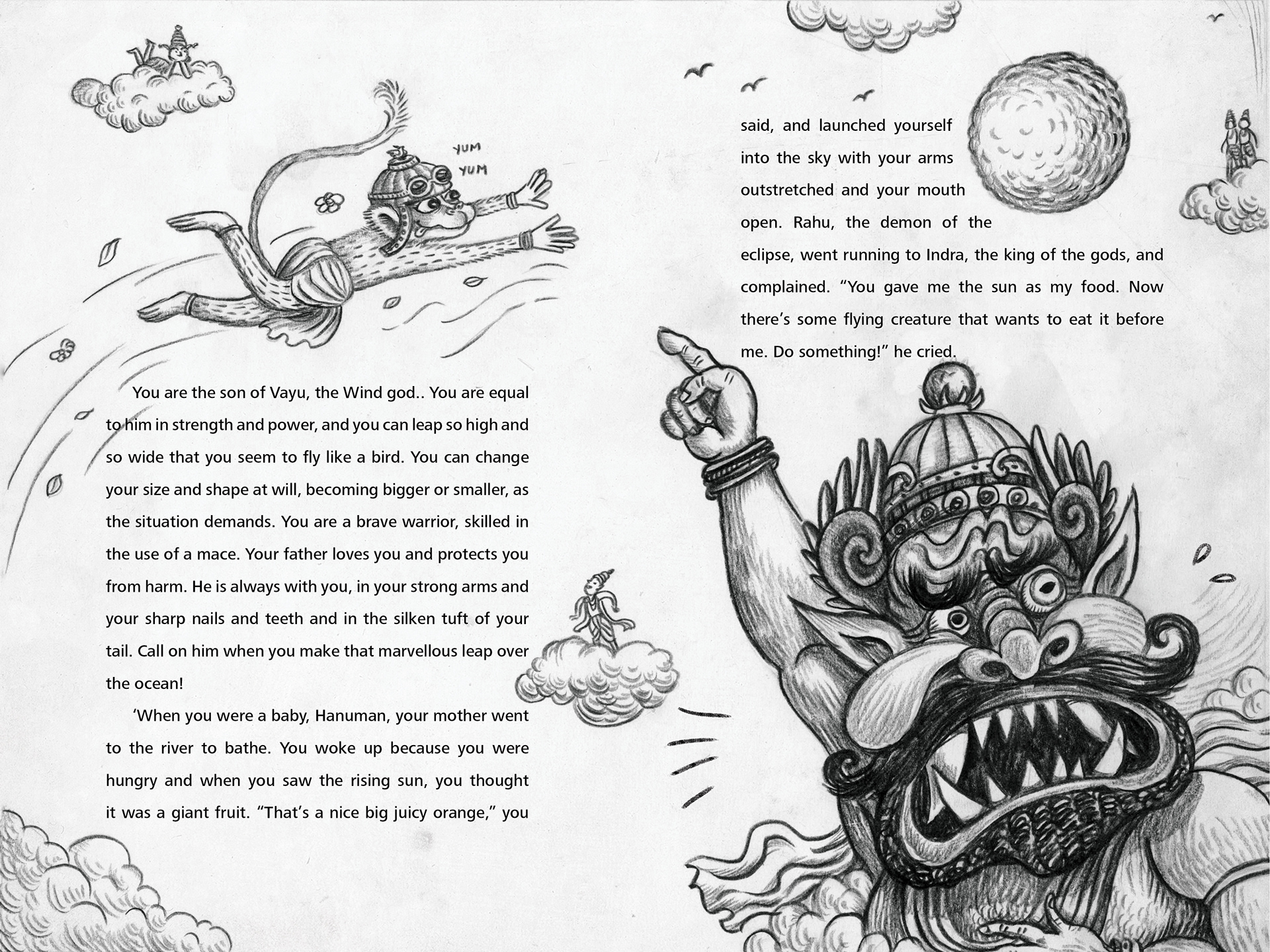 Retelling of Hanumans story from a modern childs point of view. Written by Arshia Sattar and Visualised by Sunaina Coelho.