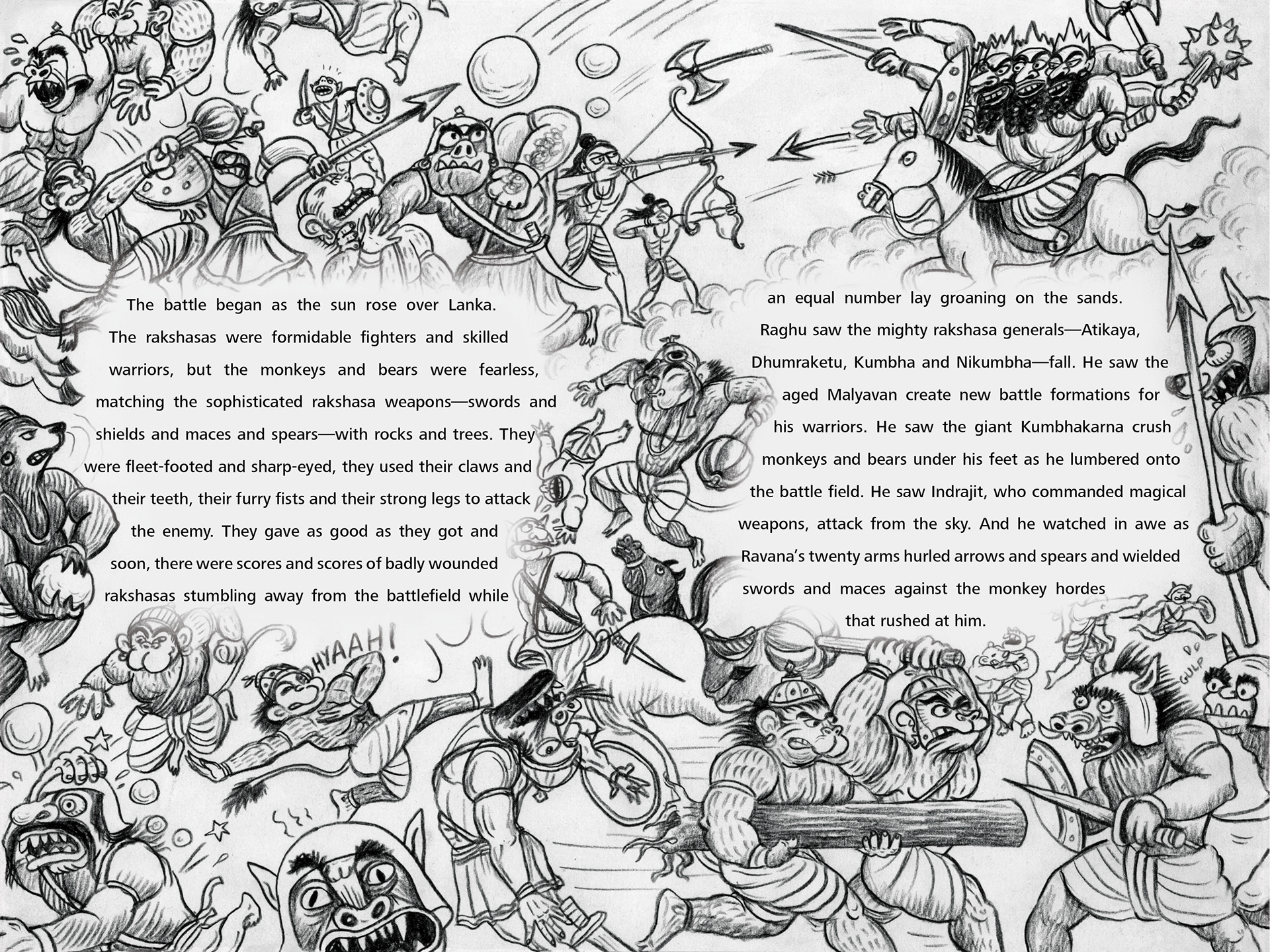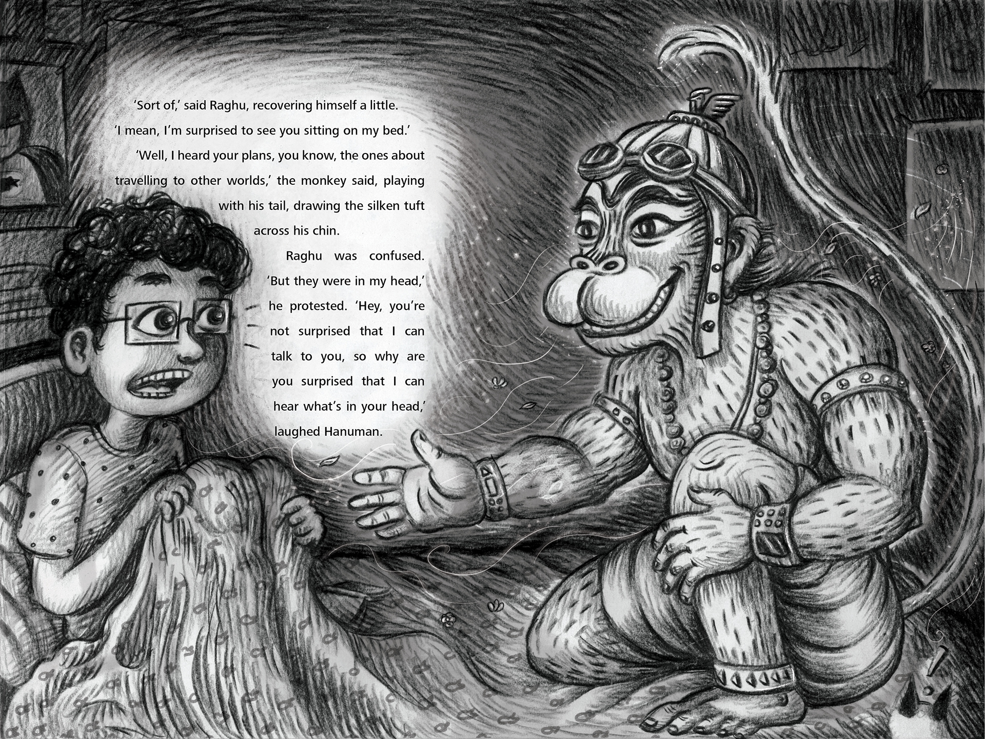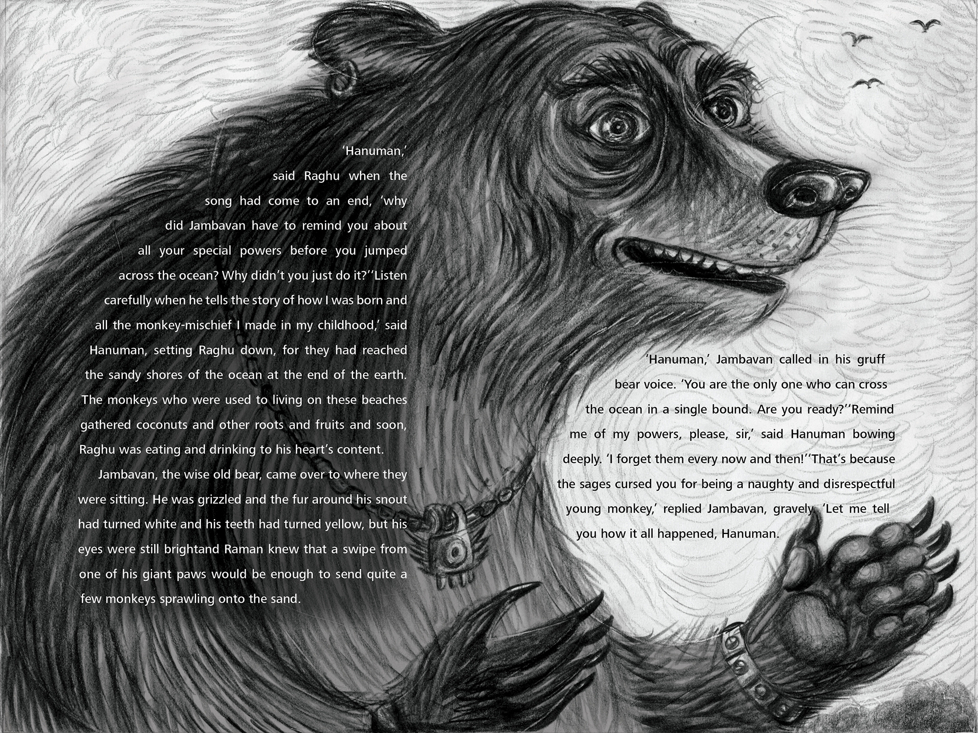 Retelling of Hanumans story from a modern childs point of view. Written by Arshia Sattar and Visualised by Sunaina Coelho.