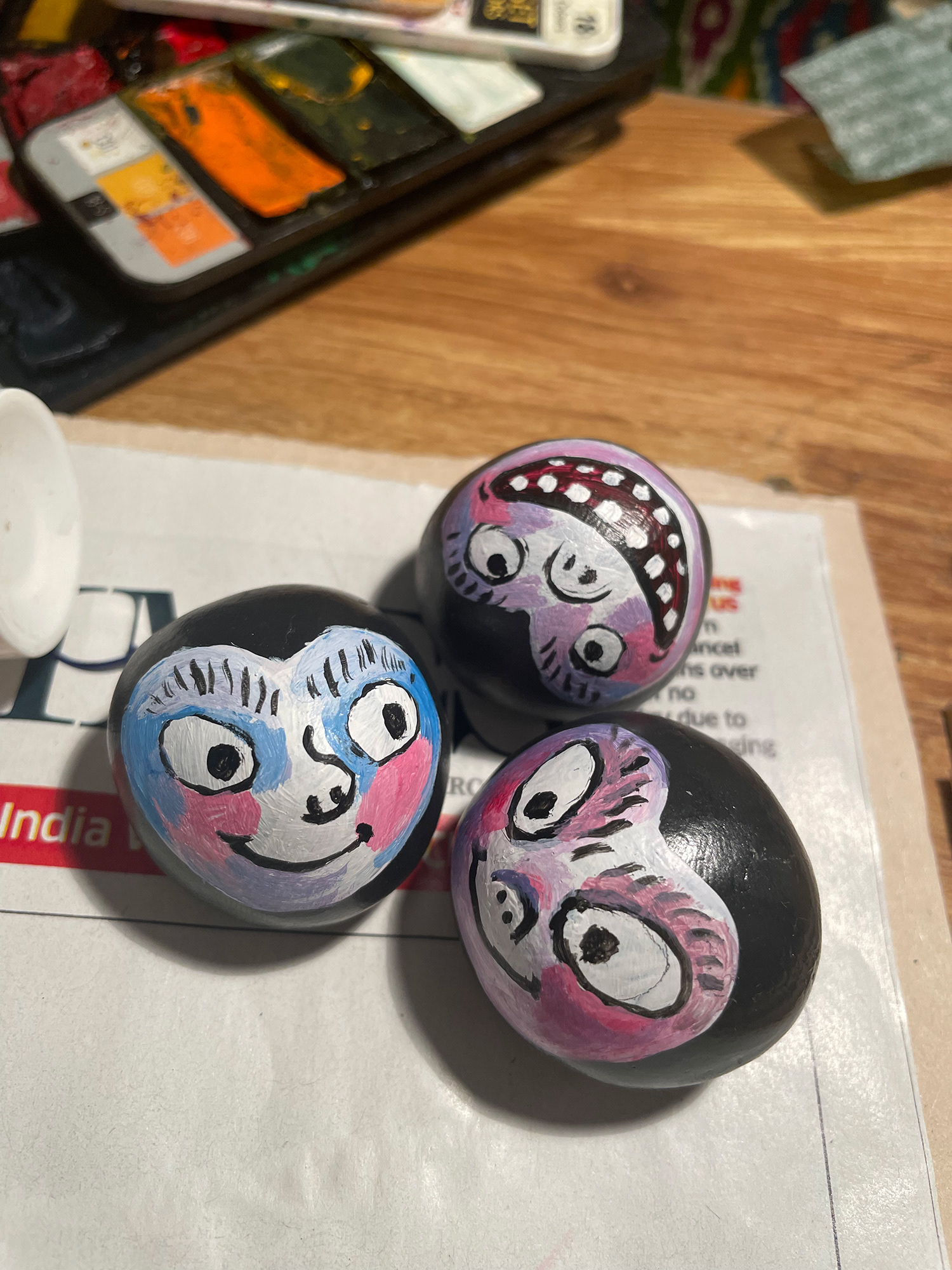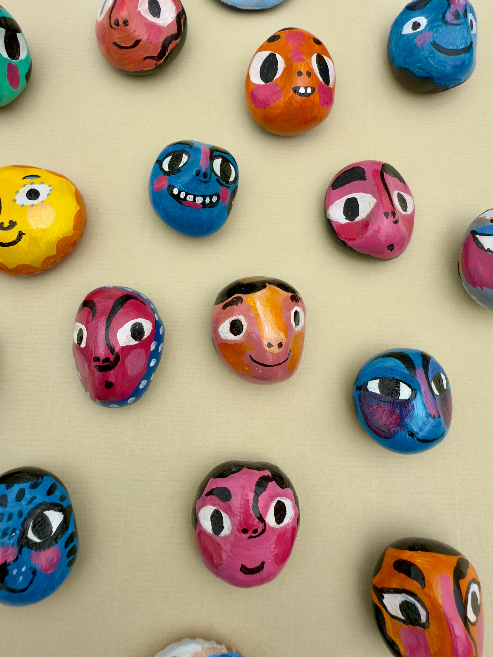 I started making these in between my design and illustration projects as a way to get off the digital medium and work with my hands. I also realised it was fun to paint in a form that was not flat and rectangular. You can call them art objects if you're feeling fancy but they're also fridge magnets.